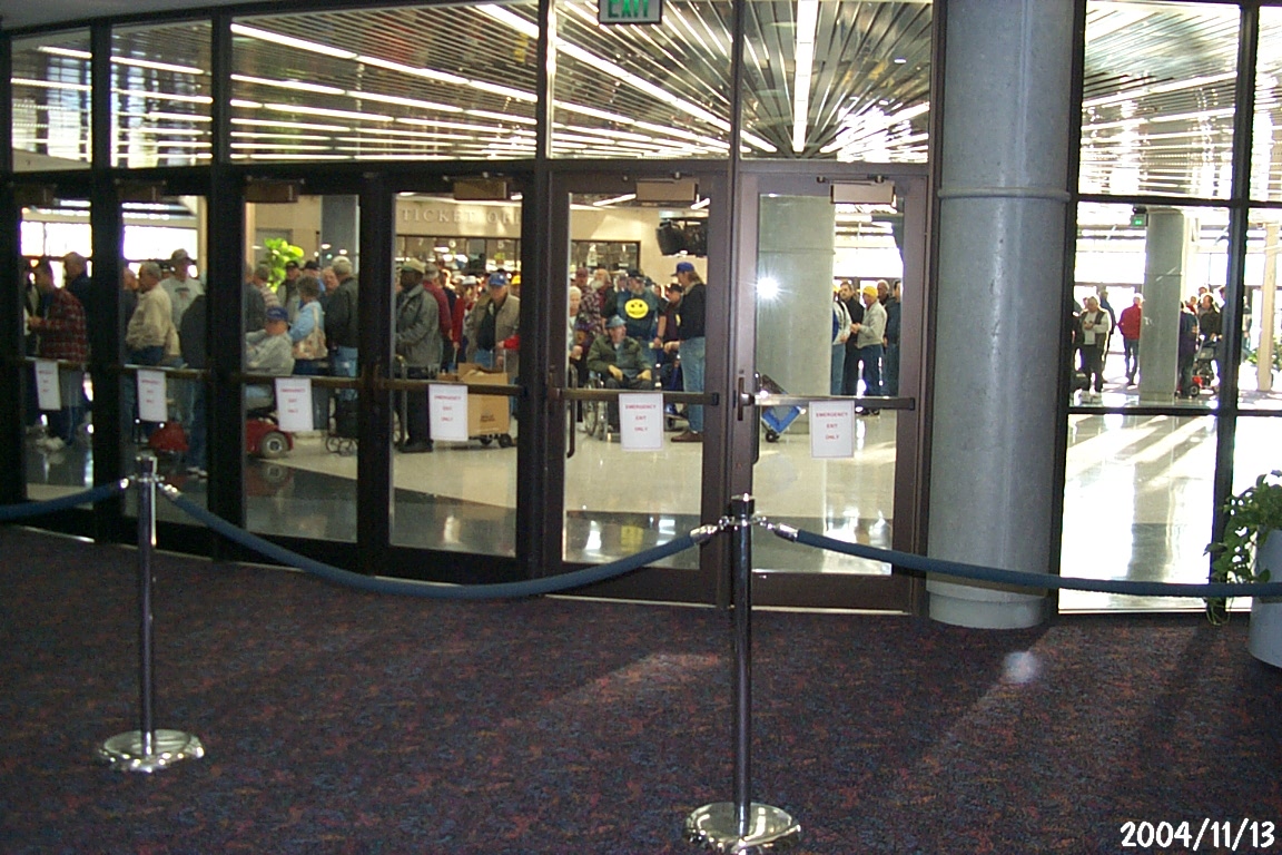 The line of people waiting to get in, sat. Hamfest picture