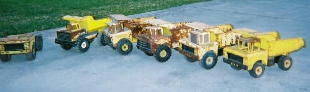 Here are some pictures of Tonka Trucks that Dungeon Studios has collected over the years. The collection started Back when Andy's parents bought him Tonka Trucks as a child. Andy then found a huge amount of Tonka Trucks at his fathers friends house. His fathers friend lived right next store to were his father grew up. So these were Tonka Trucks that his Father had played with. Since then Andy has been on the lookout for good or rare Tonka Trucks to add to the Dungeon Studios collection. If you want to know were some good places are to find Tonka Trucks You can try: -Flea Markets -Ebay -Junk Yards (I've found 4 trucks by looking junk yards) -Tag sales (or garage sales, what ever you call them) -and house auctionsSome of the Tonka Trucks are stored in doors, These are the rare or expensive ones. While the other Trucks are stored in the garage to help preserve them from rust and time. The following list will have some broken links until I get all of the picture developed. |